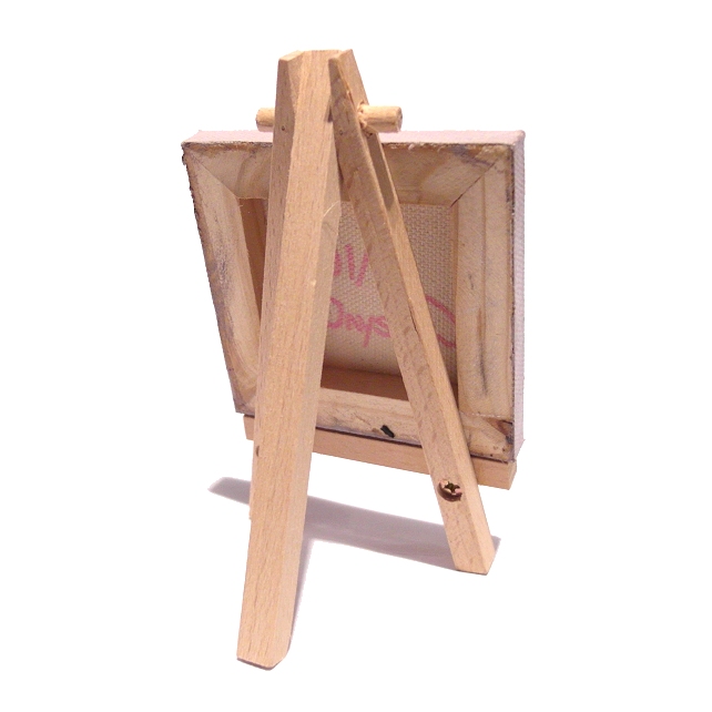 The spotty pig canvas will either come with a 12cm (4.7") wooden easel for display, or will be strung with a ribbon in a colour that matches the painting so it can be hung on a wall (as in picture 5). Just choose with easel or ribbon hanging when you buy.