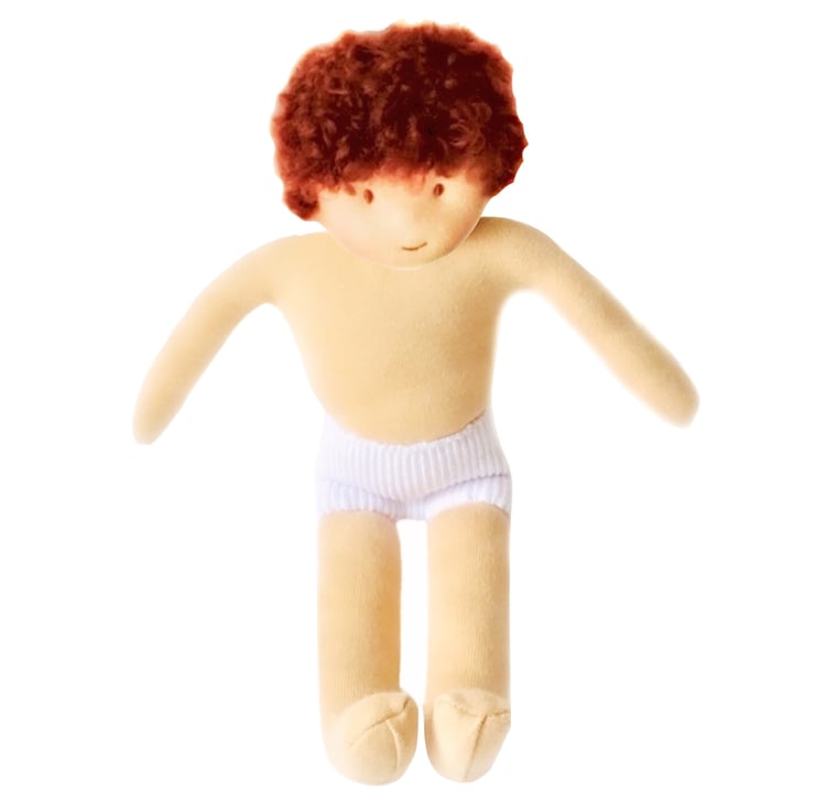 Oliver is a little doll made from best quality CE safe de Witte doll skin from Holland. He is made using a technique very similar to the Waldorf method, is very soft and squeezable and sits down easily. His hair is made from pure wild mohair and his cheeks are coloured with beeswax. He is 28cm tall and is CE safe but is not suitable for children under 3.