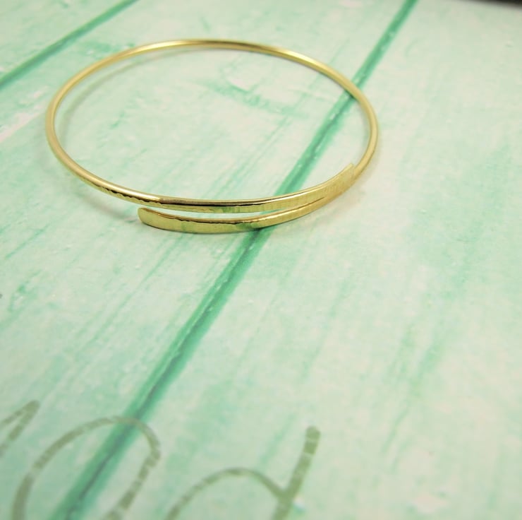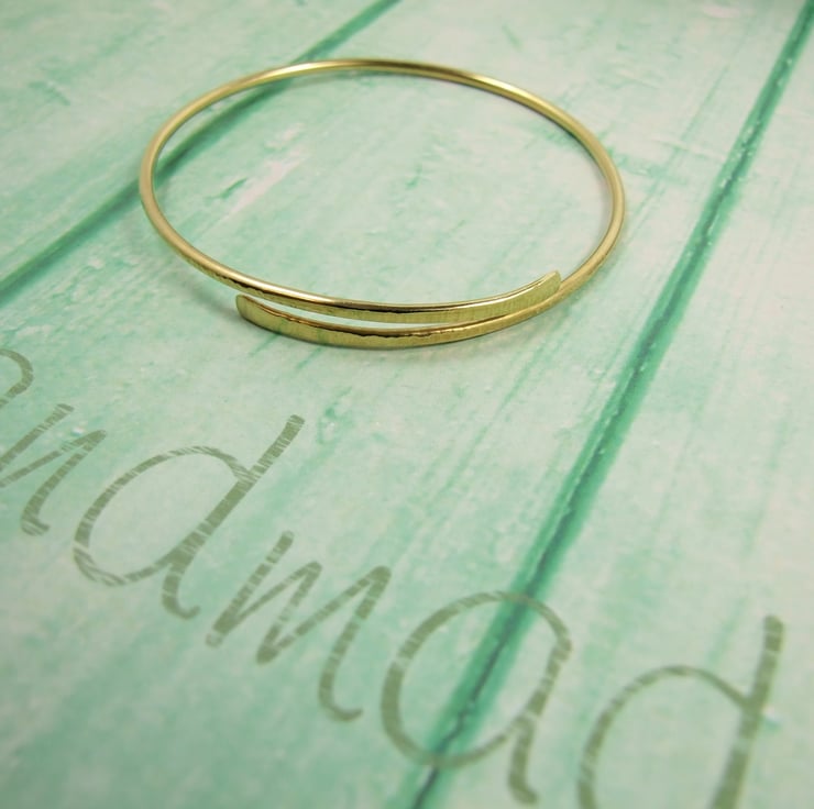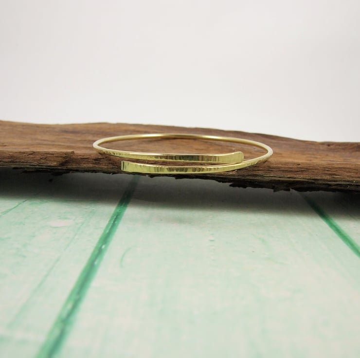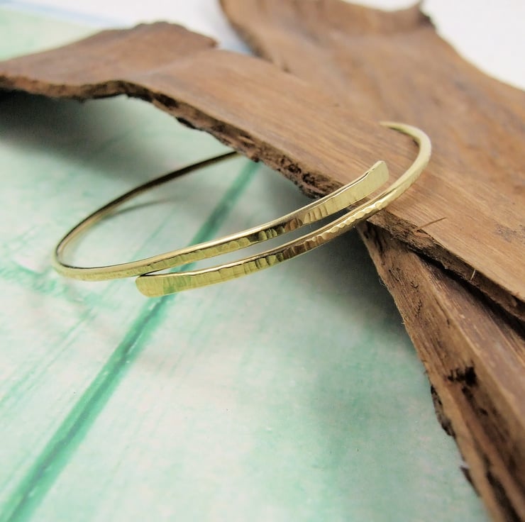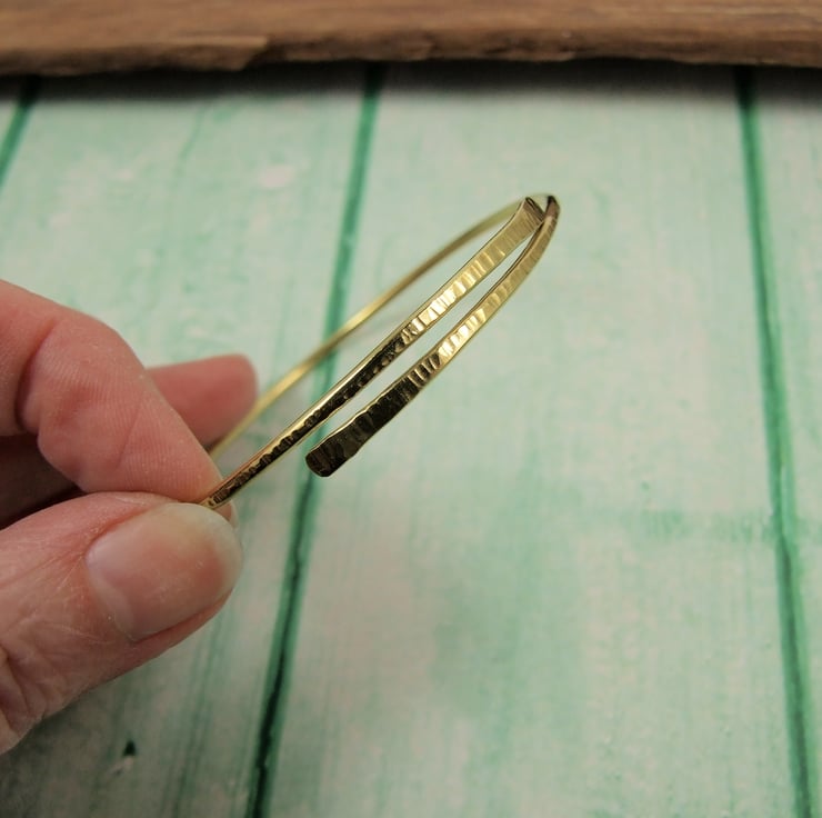 I have made the bangle from 2mm wide solid brass wire which I have shaped and hammered to create the line texture.