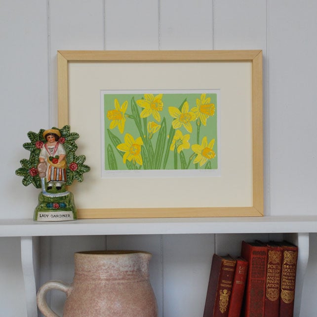 'Spring Narcissus' - Limited edition, hand cut linocut reduction print.