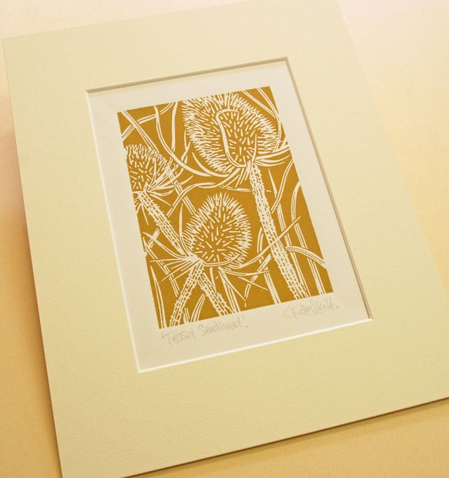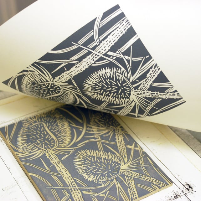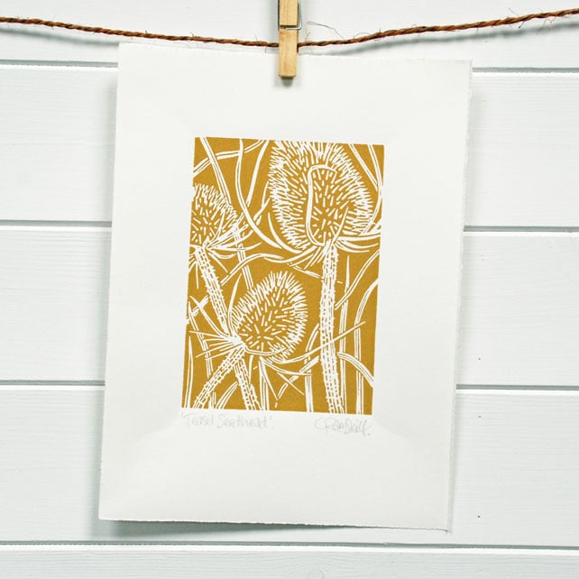Wild Flower - Teasel - Original hand cut Linocut Print.