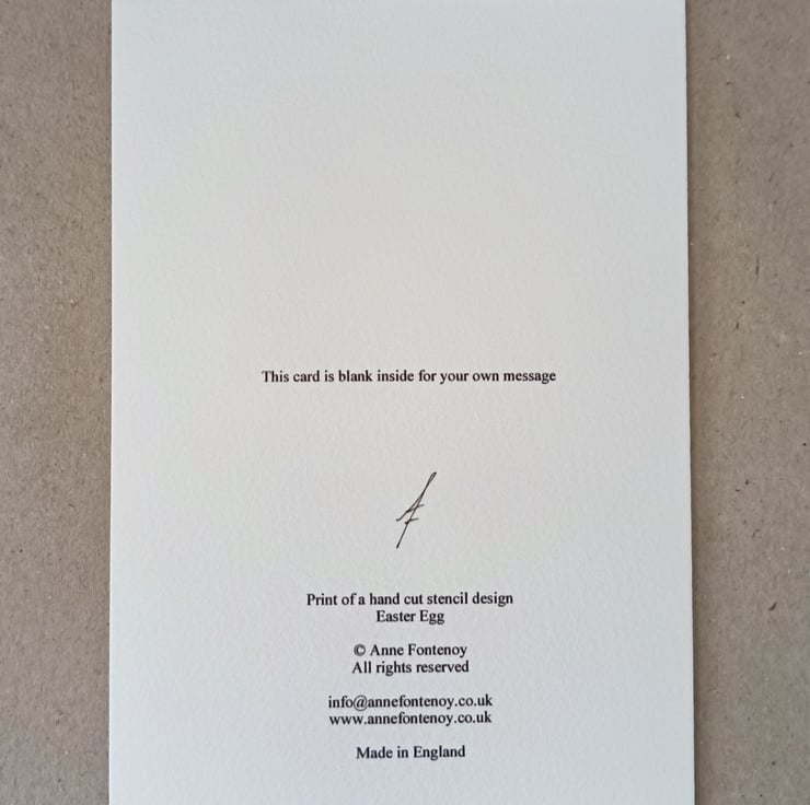 The inks I used to airbrush the original design are no longer available so I scanned the original artwork and now I print these Easter note cards with Epson Claria inks onto 190 gsm digital fine art paper using an A4 desktop inkjet printer. A medium weight lightly textured English watercolour card. Any gradations of colour are part of the airbrush technique and are not a fault.