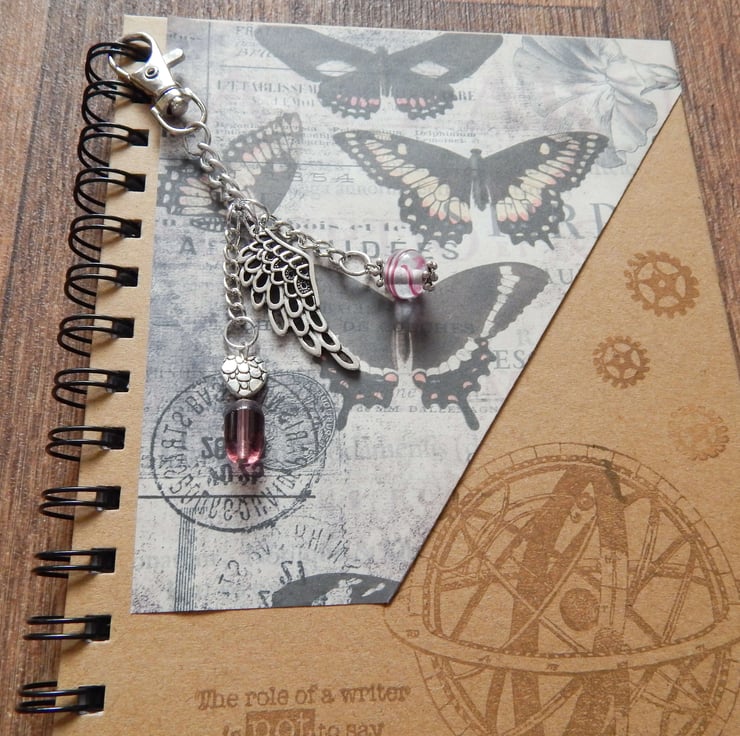 Handmade in the North East of England, this heart and angel wing journal/bag charm can be used to add a quirky accessory to your bag or used to personalise your journal making it extra special.