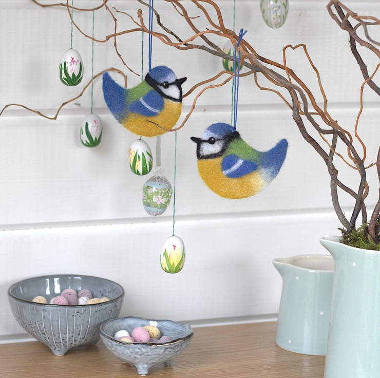 Bonnie has lovely, colourful plumage to brighten up your home, and a sparkle in her eyes. She could hang from some branches as part of a pretty spring or Easter display (she's the one shown on the left in the picture). She will also be very happy to keep you company all year round on twigs in a vase or on a cupboard handle, and would make a charming, unusual gift for Mother's Day.