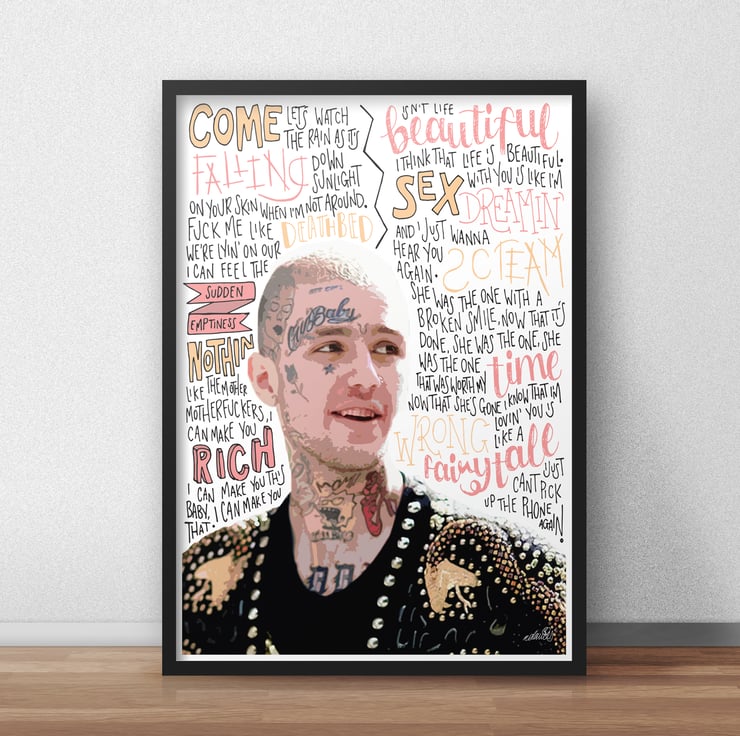 Lil Peep inspired poster / print featuring song lyrics and quotes.