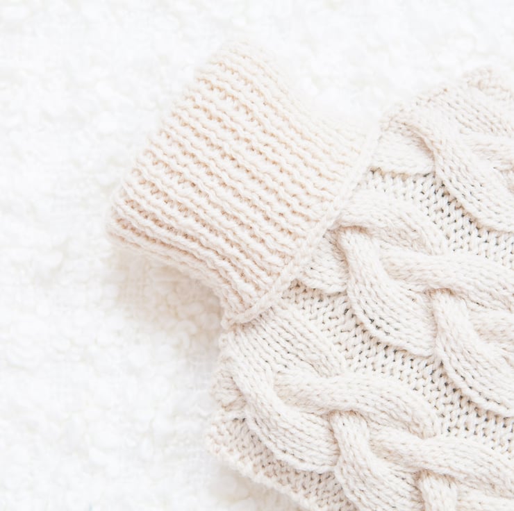 It features a gorgeous platted cable design and has a deep rib roll-neck which allows you to change the water without taking off the cover.