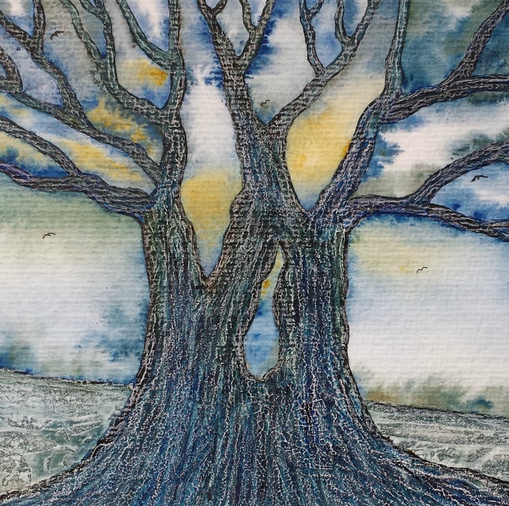 The painting was triggered by a lyric to a Leonard Cohen song. No matter how 'low' one feels, how despondent one is at the state of the world there is still light out there and it can come through even on the darkest days.