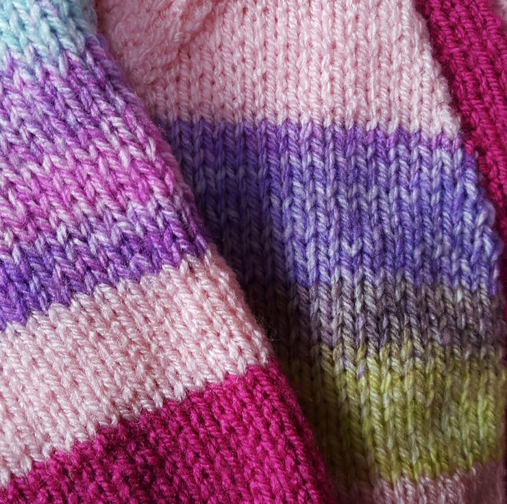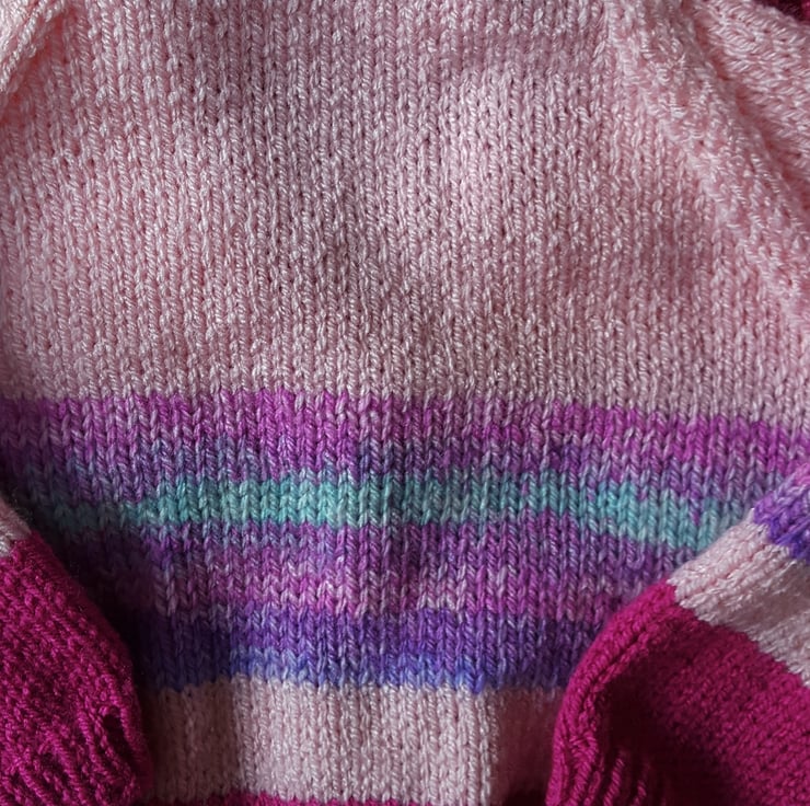 I love the soft feel and gorgeous pastel colours of this cute little cardigan and think that it would make an ideal gift for a baby. The pretty blend of heathers, pinks and greens make this a very special design from RavenRagbags.