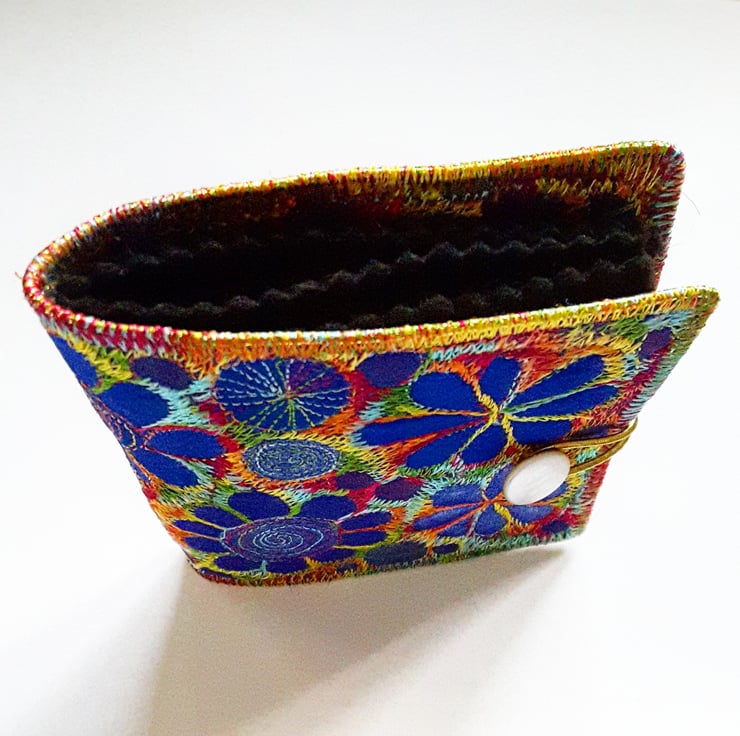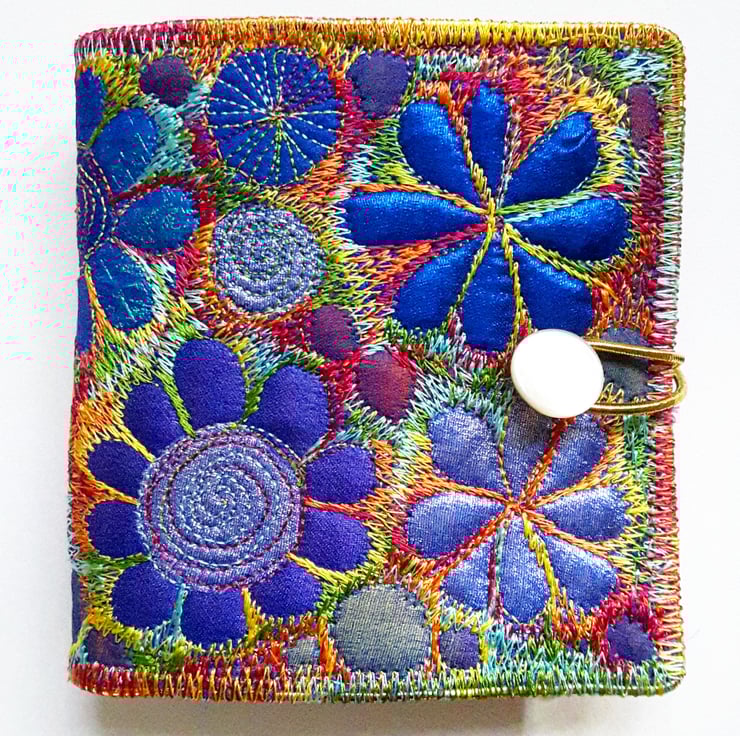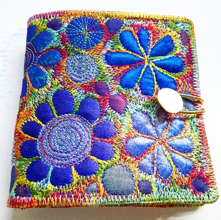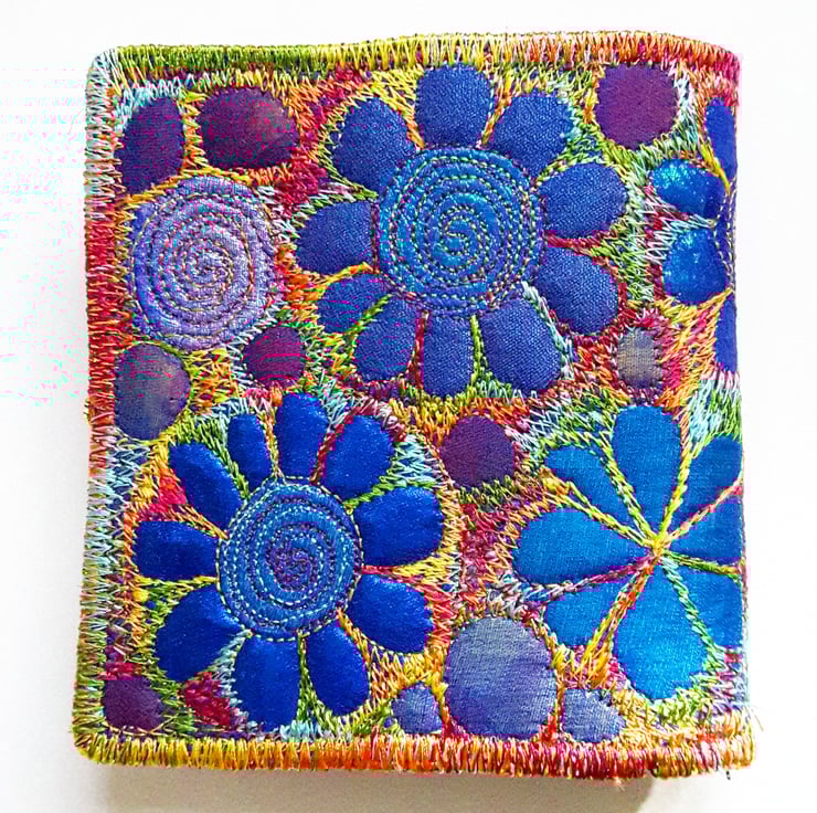 Made from layers of fabric including hand dyed Egyptian cotton and silk fabrics using the free machine embroidery style of sewing