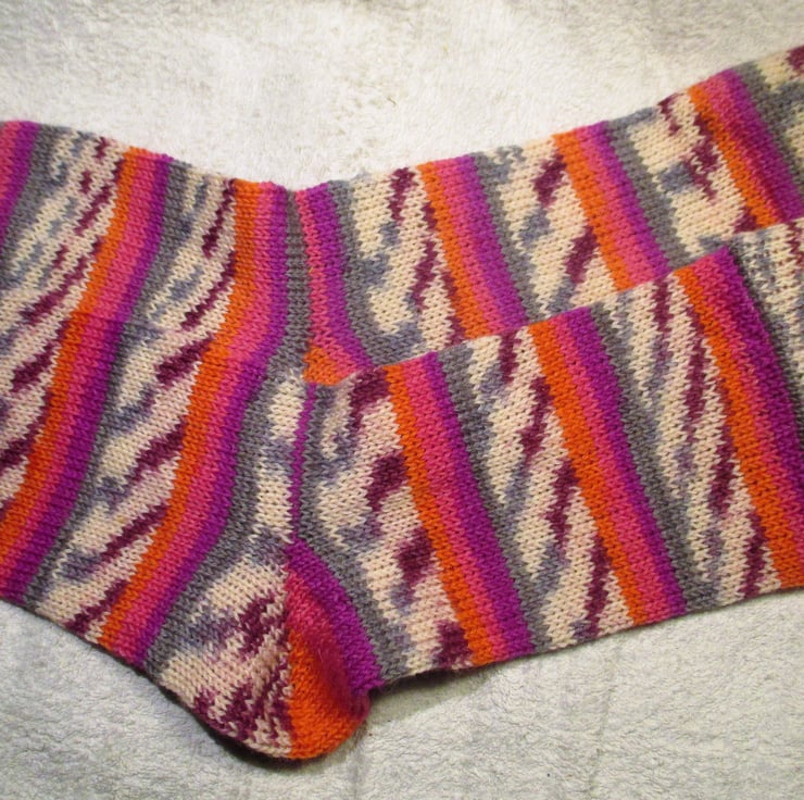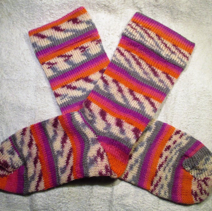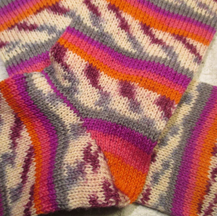 Inspired by the yarn,I call these wallflower socks, these socks are hard wearing, warm with no seam toes and only the natural grip so that you do not get your blood circulation cut off !!