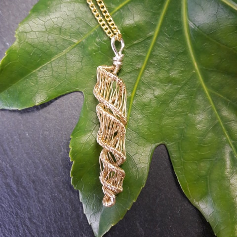 Made in gold plated copper wire and comes with a 16 inch gold plated snake chain (lobster clasp fastening).