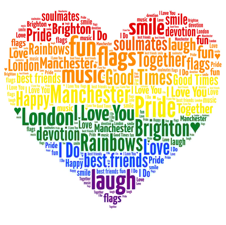 Personalised Pride Love Heart Gay Lesbian LGBT Same Sex Rainbow Word Art Design