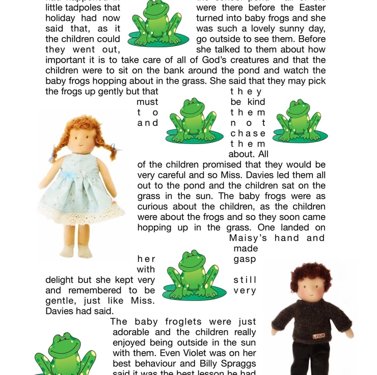 There are other children in Maisy’s class at Mulberry Green Infants’School - Violet, Billy, Amber, Rosie, Till, Amelia, Ruby, Marigold and twins Oliver and Olivia, who have a puppy called Oscar. The children are all 26cm tall, Baby Daisy is 16cm and the dogs are just 8cm. Maisy and Mo love nothing more than having adventures with their friends.