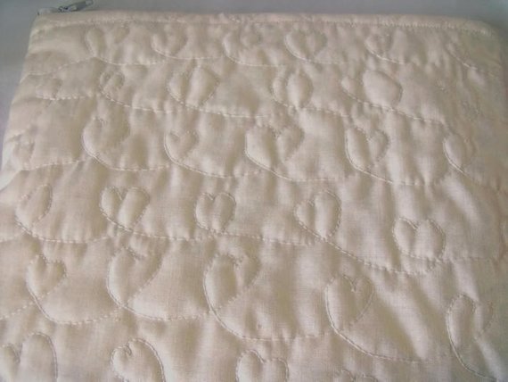 I've free motion quilted the cream outer fabric using cotton wadding.