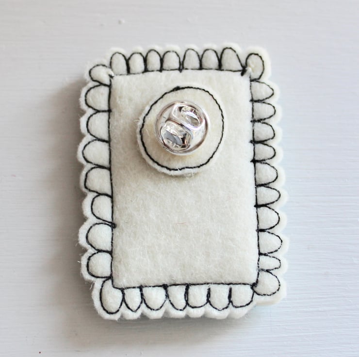 This brooch measures 6cm by 4cm and will be sent in a glassine envelope with a heart label to close.