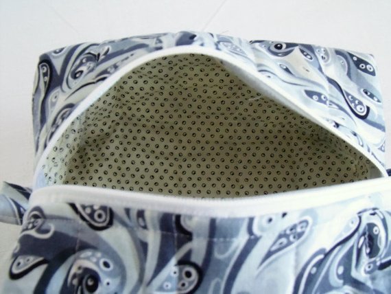 For this pouch I've used black, white and grey marbled fabric, it is lined with cream and black cotton fabric.