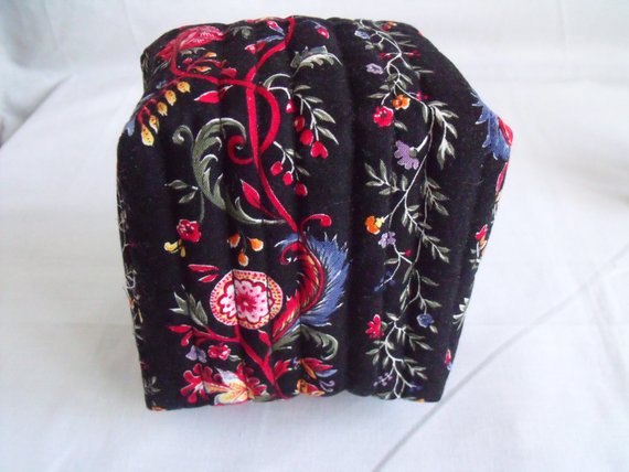 For this pouch I've used black, blue, red and green floral cotton, it is lined with green cotton fabric.