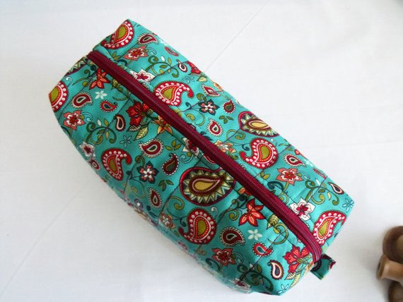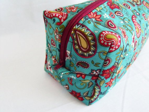 For this pouch I've used jade green and maroon paisley cotton, it is lined with black and red cotton fabric.