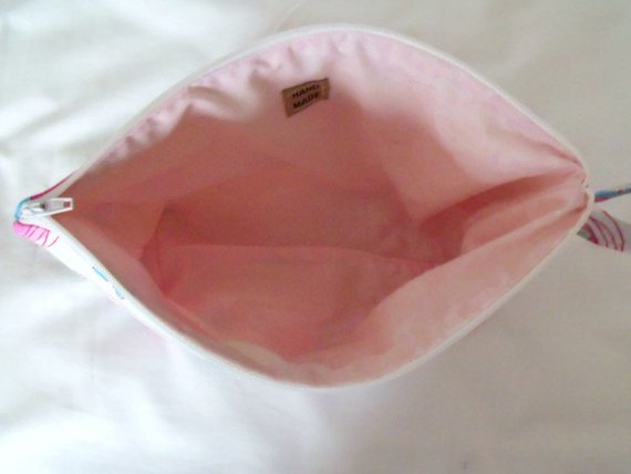 Large quilted cosmetic bag or toiletry bag, lined zipped pouch.