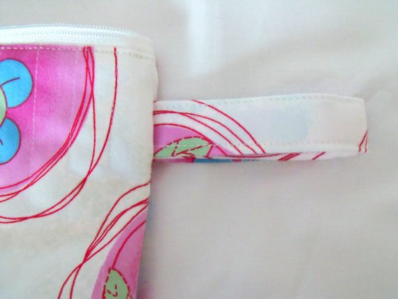 The outer is polycotton floral fabric, white with pink and blue floral print.