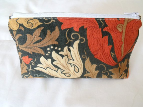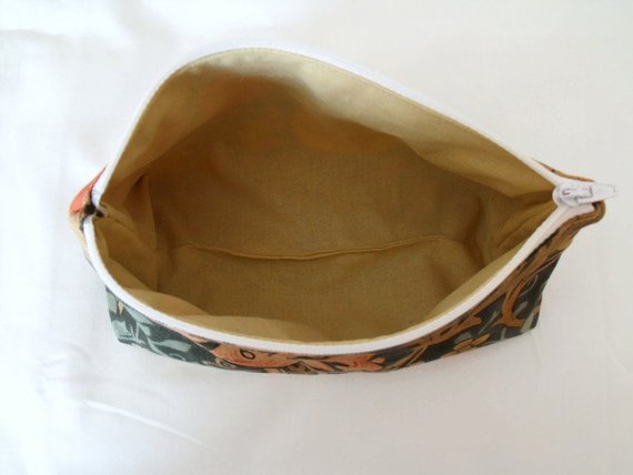Cotton floral cosmetic bag, make up pouch with zip.