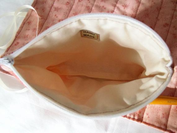 Fully lined quilted cosmetic bag.