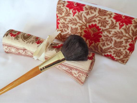 Cosmetic gift set, make up brush holder and zipped cosmetic bag.
