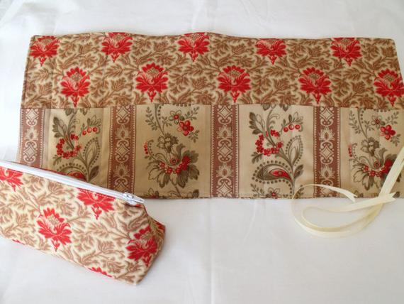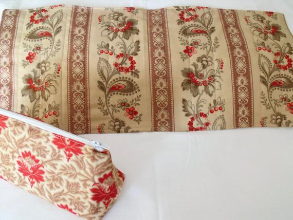 Sewn with Moda cotton fabric in colours of red, beige and green.