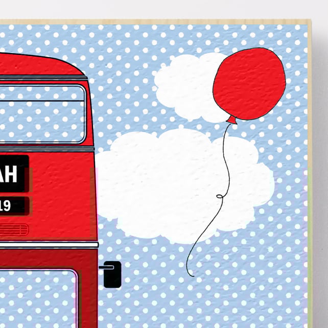 Personalised London Bus Wooden Picture Block, nursery decor baby gift