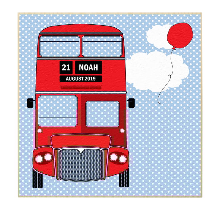 This personalised London Bus wooden picture block in bright, primary shades will look great in a baby’s nursery – a lovely, unique christening gift idea. Stand it on a shelf or windowsill for a lovely decorative touch in your little boy or girl’s bedroom. Personalised with your child’s first name and date of birth.