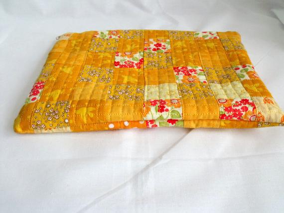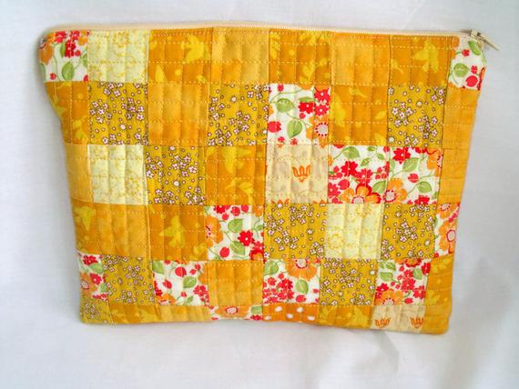 Versatile quilted patchwork cosmetic bag, lined zipped pouch.