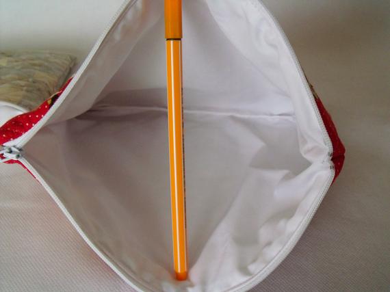 Versatile quilted cosmetic bag, crochet hook bag, toiletry bag, lined zipped pouch, tablet sleeve or pencil case.