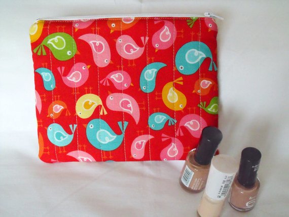 Versatile quilted cosmetic bag, lined zipped pouch.