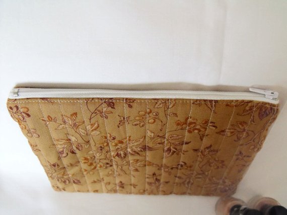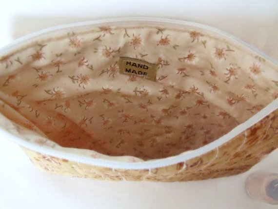 Versatile quilted cosmetic bag, lined zipped pouch.