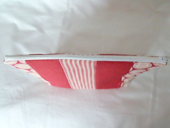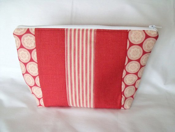 Quilted cosmetic bag or toiletry bag, lined zipped pouch.