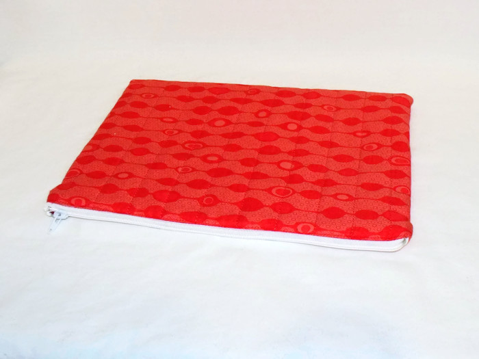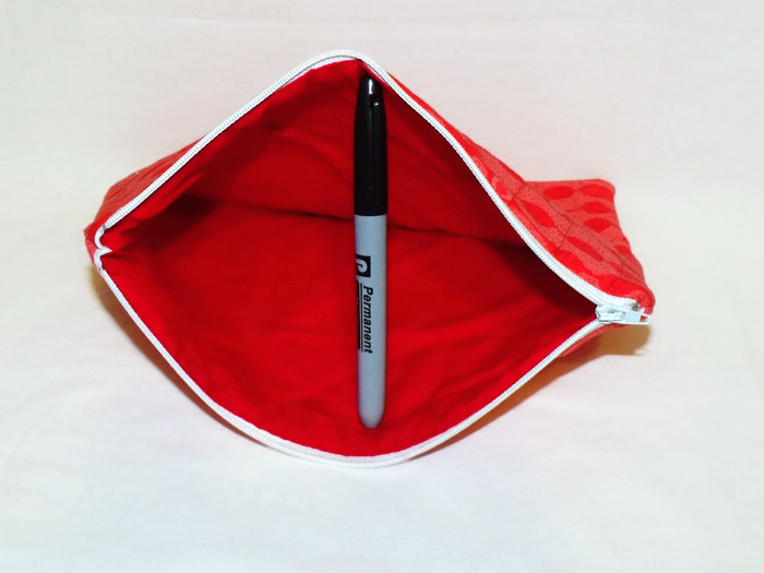 Red cotton fabric with red lining and white zip.