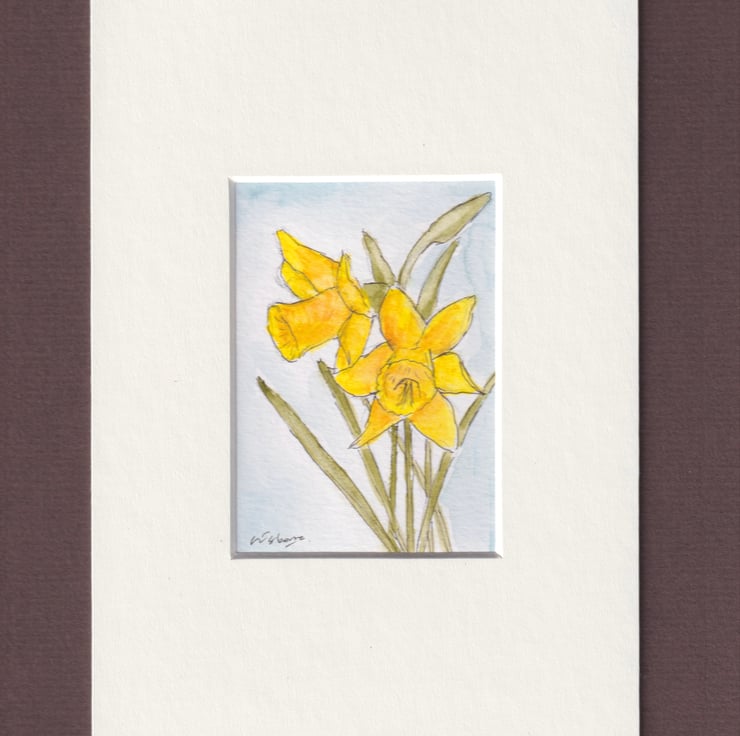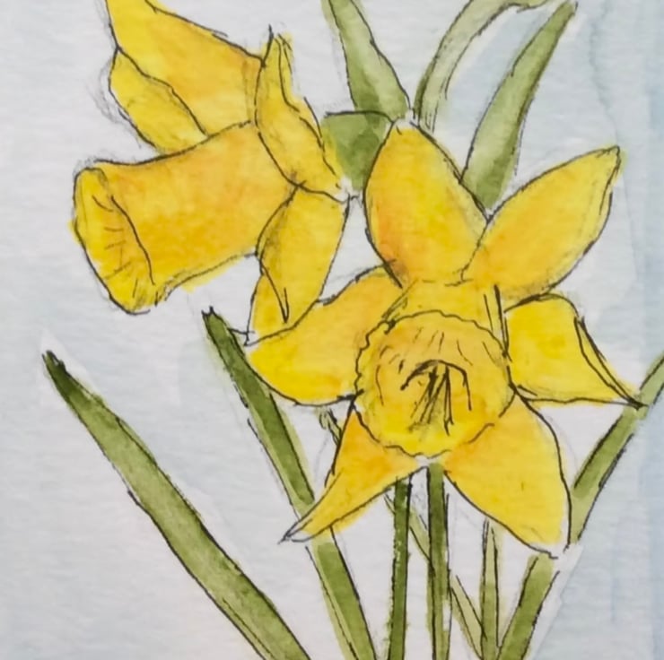 Daffodils original watercolour, pen, ink and pencil.