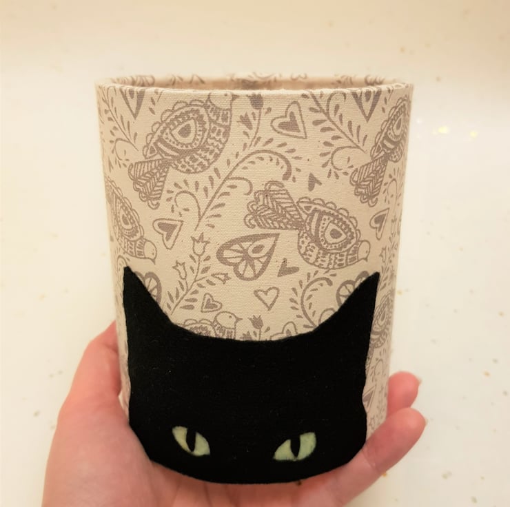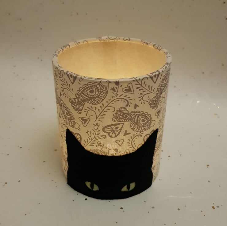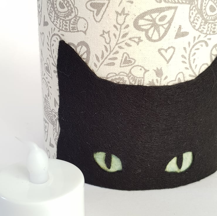 This unique lantern is a cat lover's dream. The black cat is hand cut from felt and has been given fabulous yellow-green eyes. The lantern comes complete with an LED candle that flickers gently with a warm cosy glow. It's the perfect way to help make a house a home.