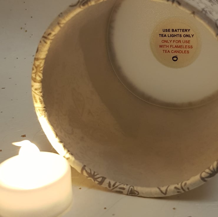 - comes complete with a flickering LED tea light candle (style may vary from that pictured)