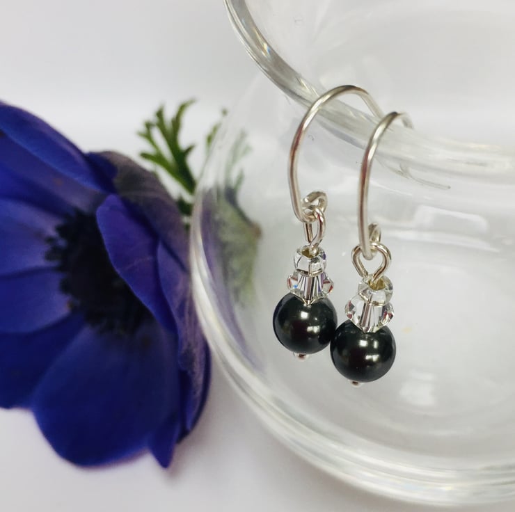 These pretty earrings are made from sterling silver with stunning black Swarovski pearls and Swarovski crystals. They have handcrafted sterling silver fittings. The perfect gift for any occasion.