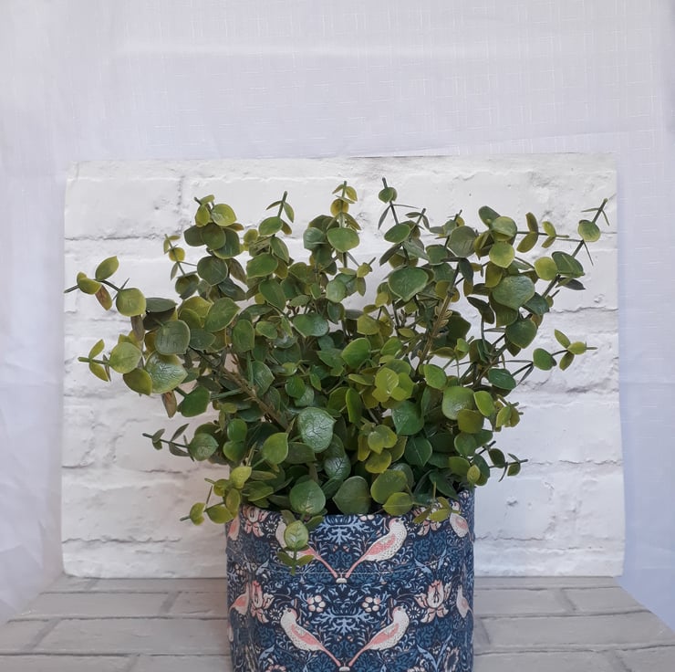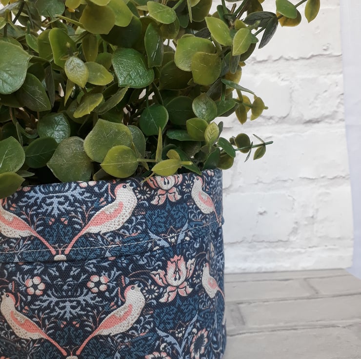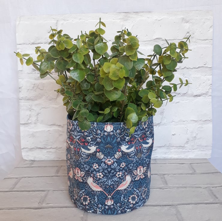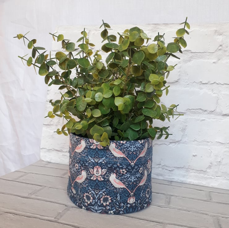 I have designed and made a fabric pot using a William Morris printed fabric. The pot could be be used for many things, i.e. a plant pot ( pop the plant in its pot inside) or on a dressing table for tissues or cotton wool balls.