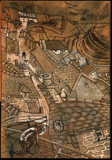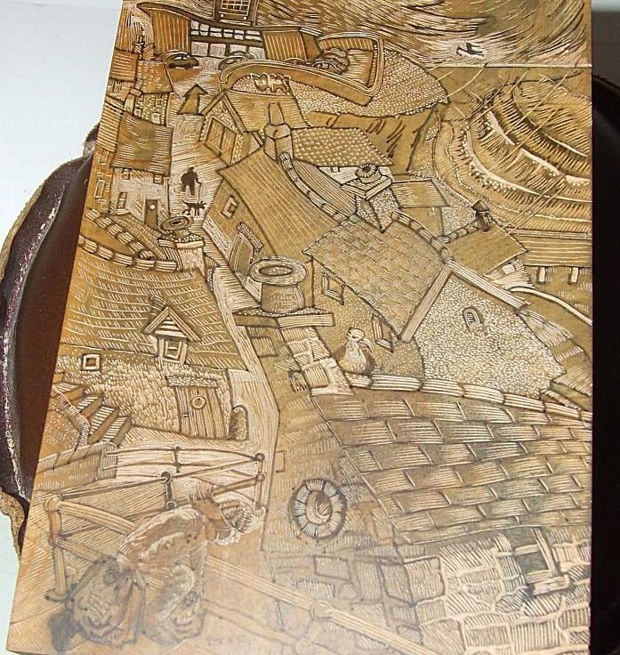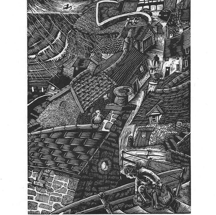 The print featured here is a wood engraving. I engraved onto an endgrain block made of box, pear or lemonwood and printed the blocks using a vintage Farley cylinder proofing press. I've had prints (including this one) accepted into the Society of Wood Engravers annual touring exhibition and the Wood Engravers Network (USA), very prestigious and attracting engravers worldwide. I'm deeply honoured to be included. Sadly the very fine nature of the engraving process took it's toll on my eyes and I no longer produce them, opting for lino prints instead; but I did love the engraving process.