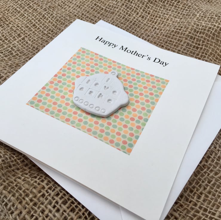 A beautiful one off Mothers day card made with a hand made Air dry clay gift. This can be framed and made into a keepsake.