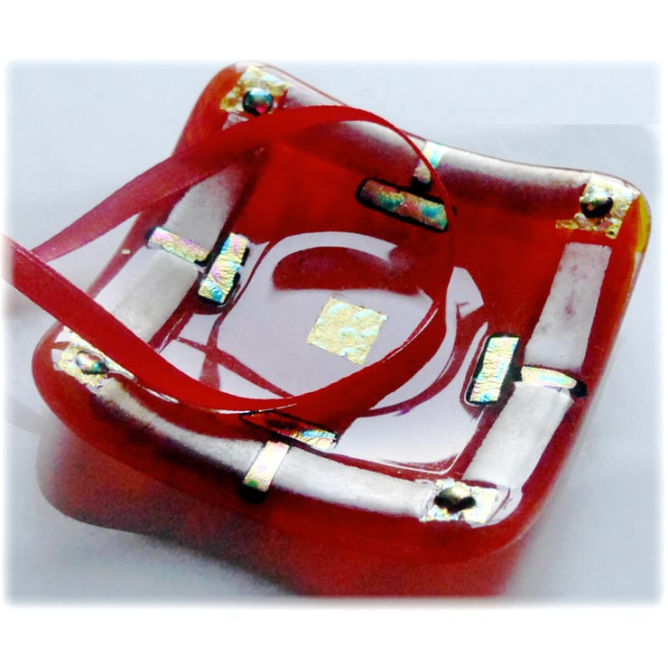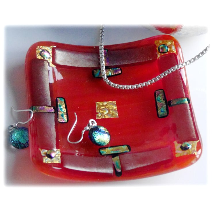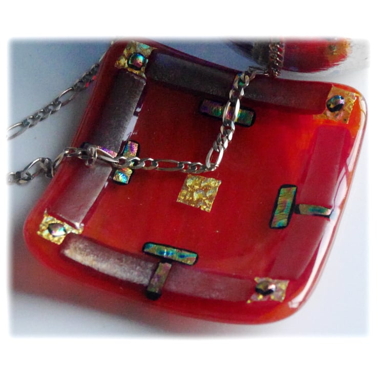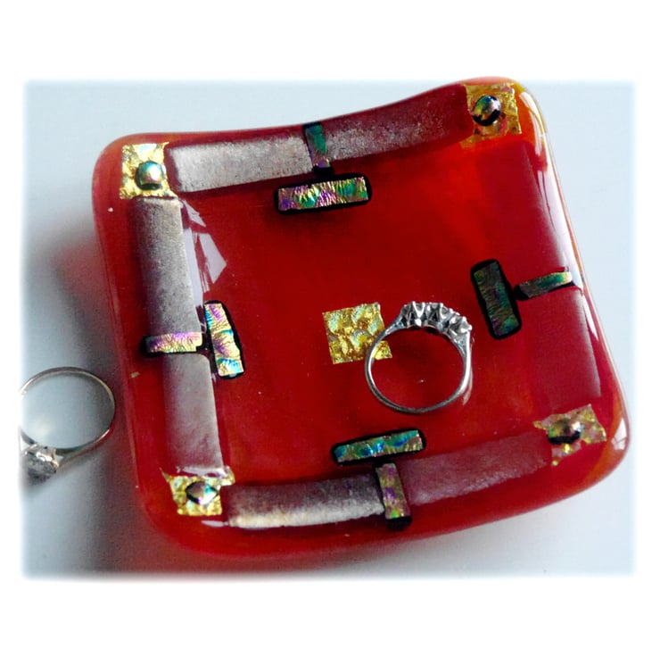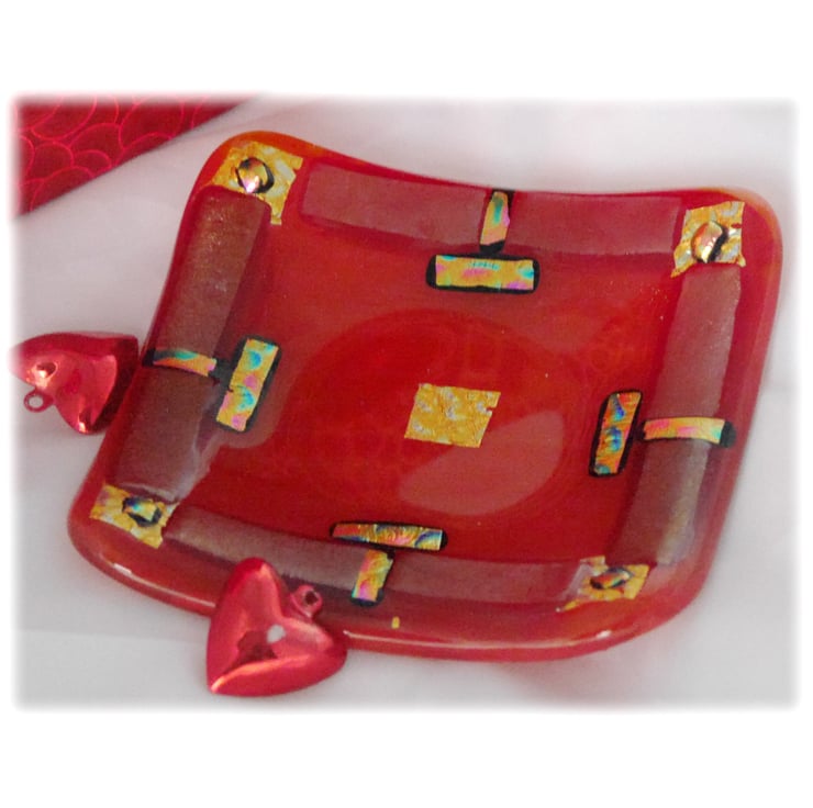 There is a further iridescent rich red border, slightly proud as this is tac fused together with a luxurious dichroic border, corners and centre which gives lovely of rich gold.