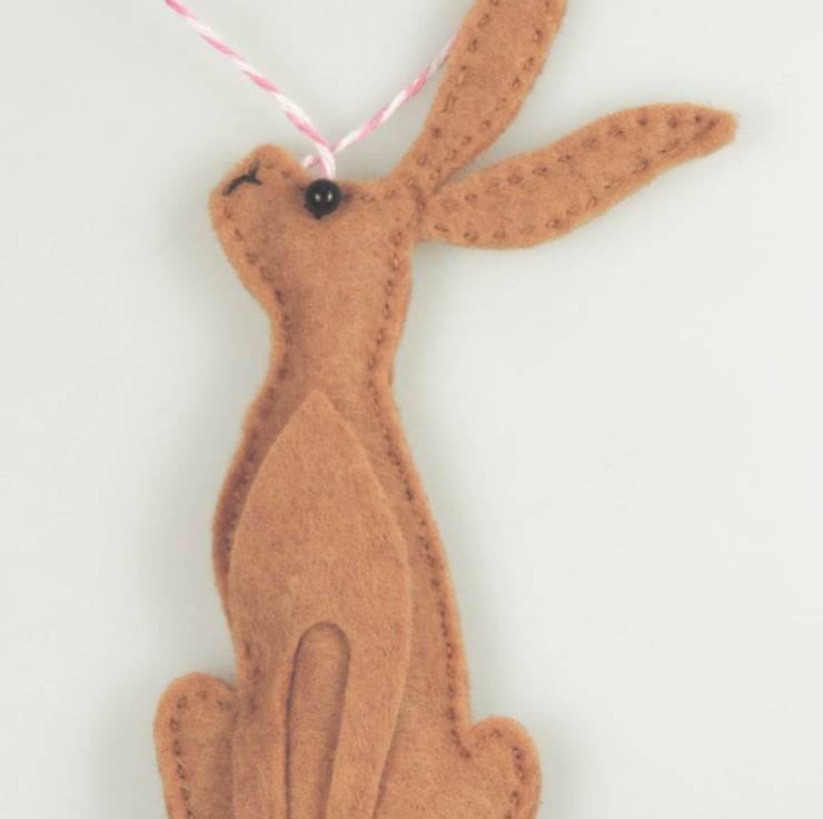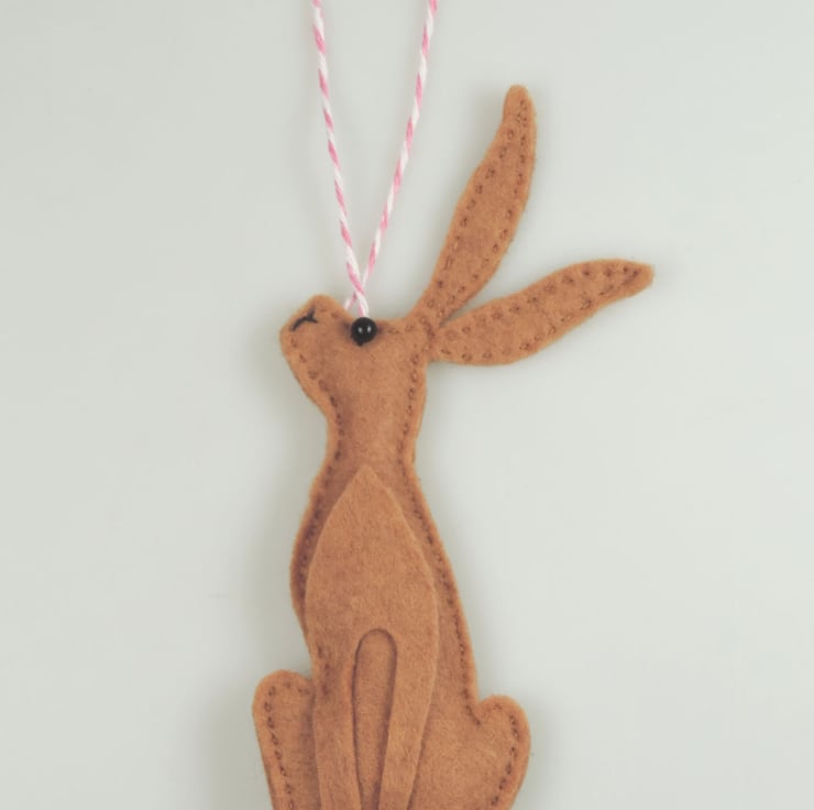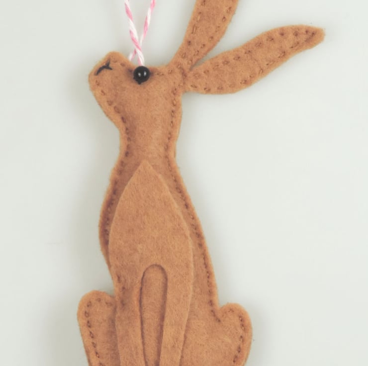 Handmade Felt Hare hanging decoration, handmade with a bead eye and a stitched nose detail.