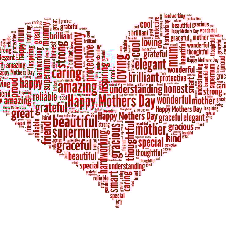 Personalised Mothers Day Love Heart Design Word Art Gifts