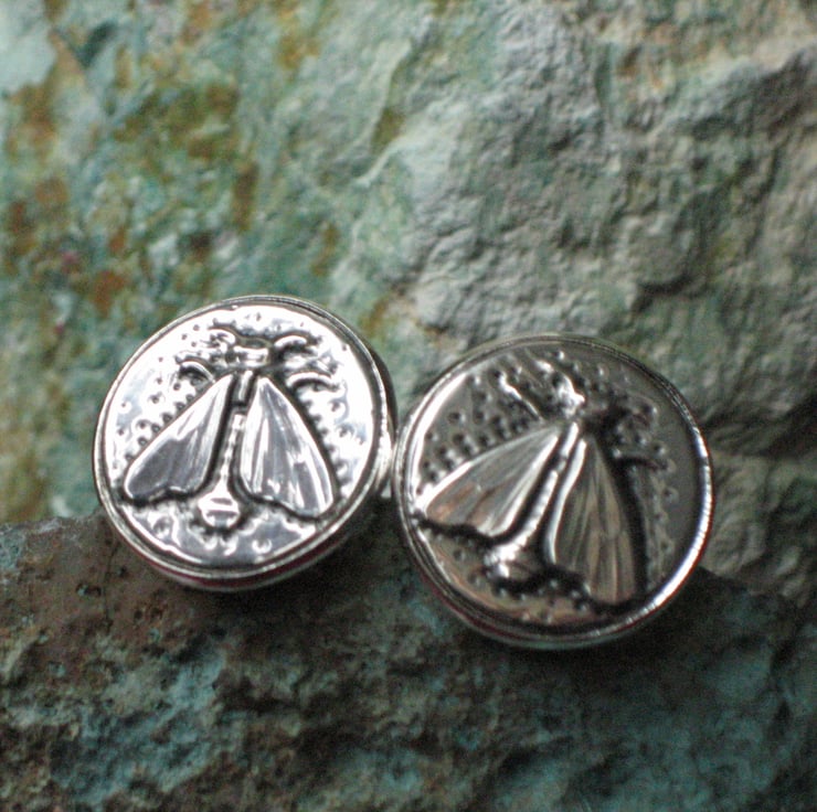 Cufflinks, bee design, handcrafted in silver pewter. These cufflinks have been made from shiny modern pewter. The bee design has been raised in sheet pewter, oxidised for depth of colour, and mounted onto cufflinks. Cufflinks make a great gift for a man for a special occasion and these cufflinks would be perfect for a man who likes gardening, wildlife or bees in particular!