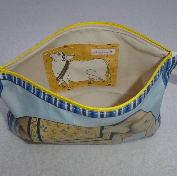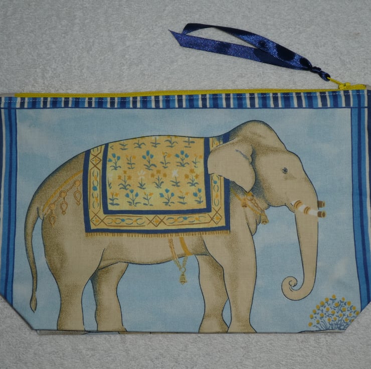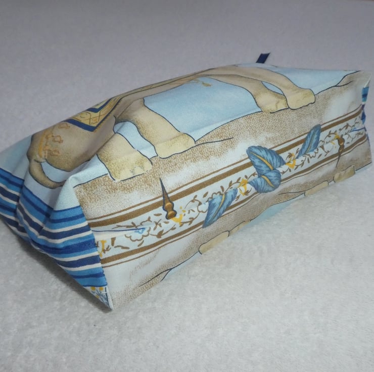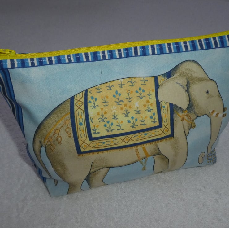 This fabulous holdall has been created from a wonderful elephant print cotton fabric. It is fully lined, and has an internal pocket. The pouch has a squared off base to make it really nice and roomy, and free-standing.