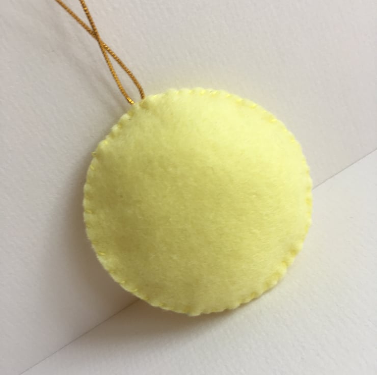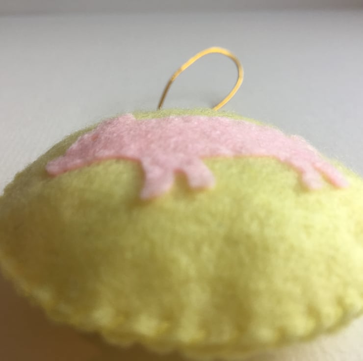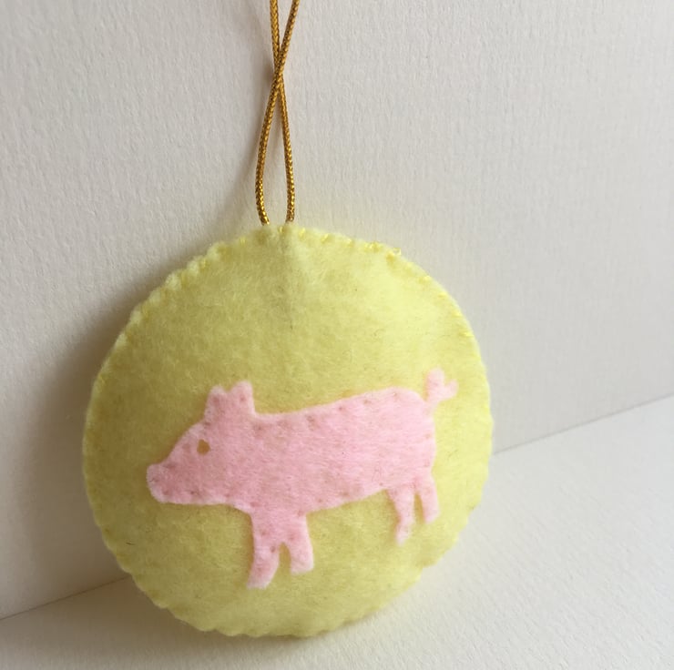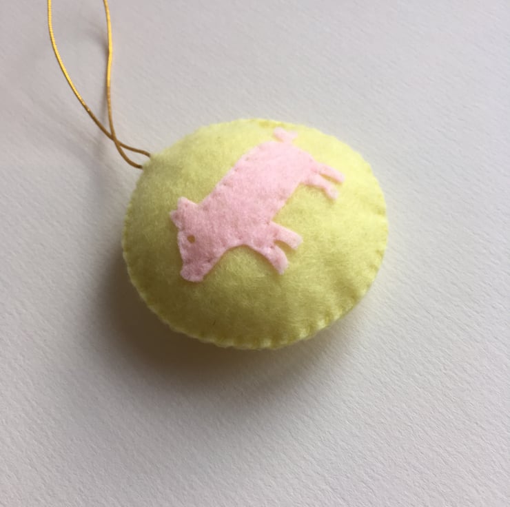 A lovely Pink Pig hand stitched on to a felt bauble and lightly stuffed to give a 3D effect with ‘Soft Toy Filling’ 100% Hi-Loft Polyester’.