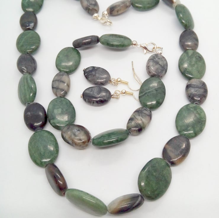Semi Precious Green and Charcoal Agate Jewellery Set, Necklace, Bracelet, Earrings, Accessories, Birthday Gift, Anniversary Gift, Agate Jewellery